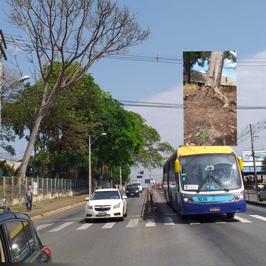 Árvore Guapuruvu pode cair e provocar grave acidente na Avenida Anhanguera