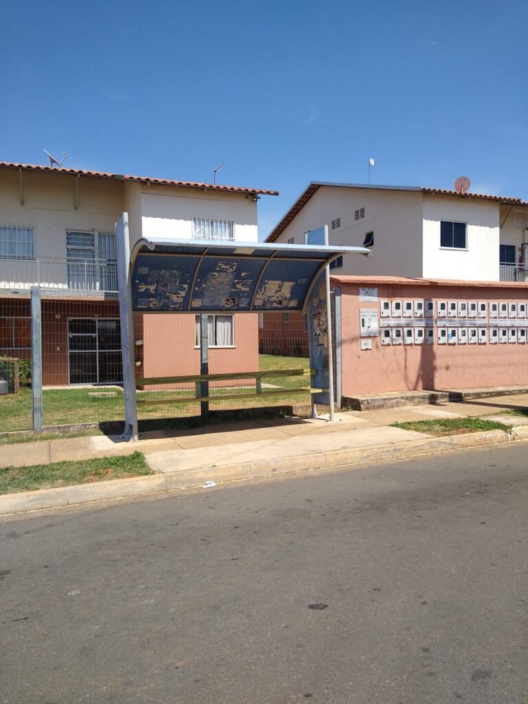 Há mais de cinco anos, o abrigo de ônibus da Rua VF – 17, com a VF – 6 no Setor Finsocial, na Região Noroeste de Goiânia, foi retirado para reforma e ainda não foi recolocado pela Prefeitura, obrigando os passageiros a esperar o transporte coletivo na chuva ou no sol. “Enquanto isso, no Jardim do Cerrado 10, uma linha de ônibus foi desativada há mais de ano e a Prefeitura ainda não removeu o abrigo que permanece intacto na Rua JC- 311. A estrutura serviria para ser instalada em um outro local,inclusive no Setor Finsocial. No ar na Terra FM. ( Foto do líder comunitário Gesner Alcindo)