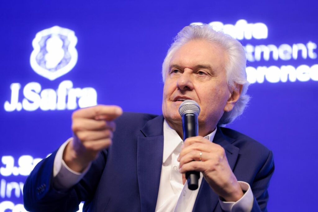 O governador Ronaldo Caiado foi um dos destaques do painel de governadores da J. Safra Investment Conference 2025, realizada pelo Banco Safra em São Paulo. O evento reuniu autoridades políticas, empresários e executivos para discutir os rumos da economia global e os desafios institucionais do Brasil. O debate contou ainda com a presença do chefe do Executivo gaúcho, Eduardo Leite, e foi mediado pelo CEO do Banco Safra, Alberto Monteiro.