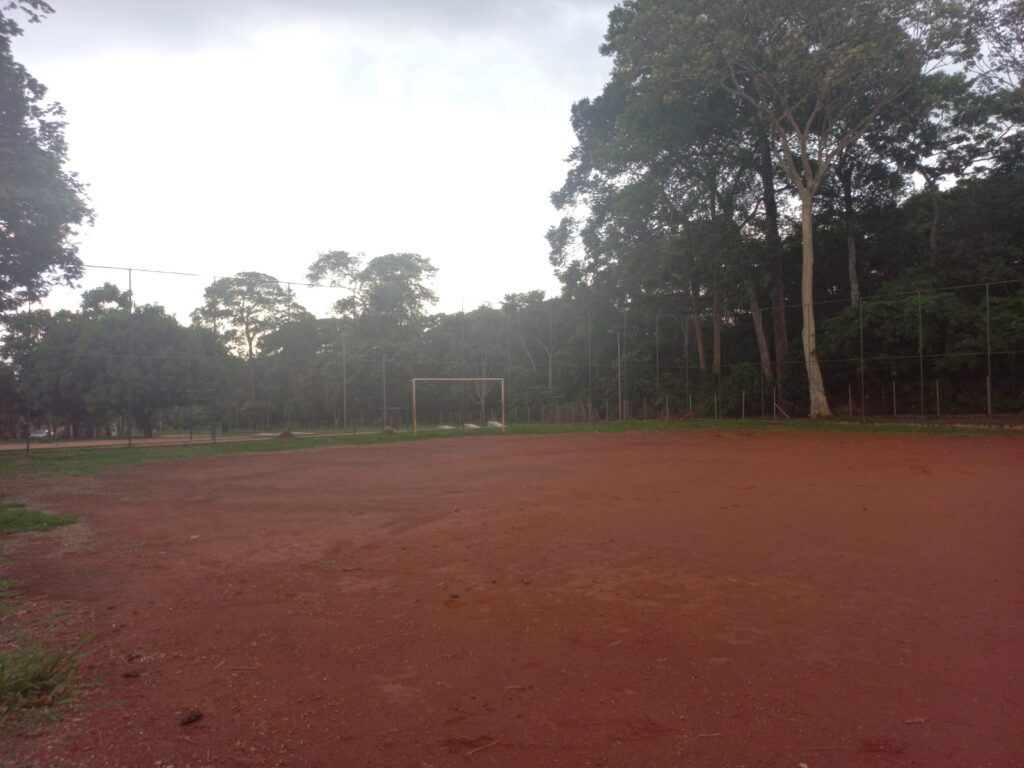 Campo de Futebol Society do Parque Ambiental Otávio Lúcio, no Setor Brisas da Mata, na Região Noroeste de Goiânia, à espera da iluminação, alambrados e talvez a grama sintética, para que o local , se transforme em escolinha de futebol para crianças e adolescentes, que moram nas imediações e não tem outras opções de lazer. No Ar na Terra FM.