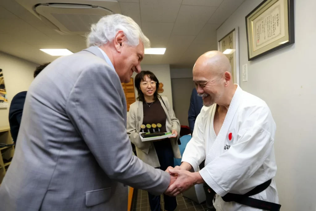 O governador de Goiás, Ronaldo Caiado, reforçou, nesta segunda-feira (14/7), os laços de cooperação com a Associação Japonesa de Karatê (JKA) para formação de atletas no projeto Construindo Campeões. Durante visita à sede da entidade, em Tóquio, Caiado entregou um troféu em reconhecimento ao trabalho prestado pela JKA e os convidou formalmente para a realização de um evento internacional de karatê em território goiano.