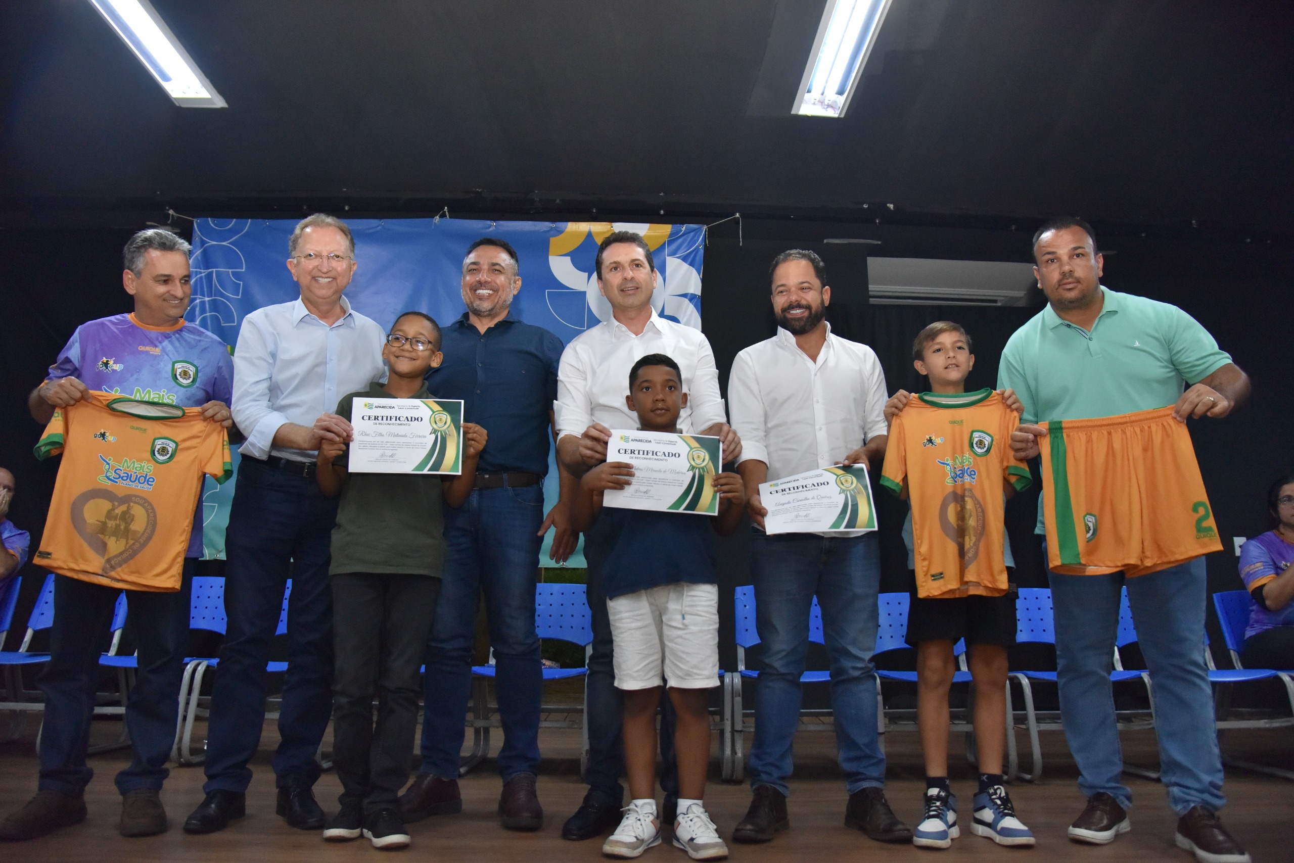 Além da entrega dos kits, Vilela garantiu inscrição gratuita para 56 atletas mirins que representarão o município no maior campeonato de futebol infantil do mundo