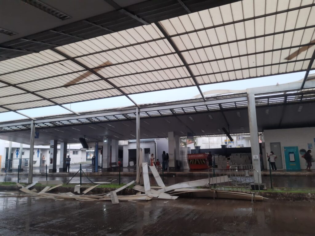 O forte temporal que caiu no final da tarde desta terça – feira ( 28) fez muitos estragos em Goiânia, derrubando dezenas de árvores. Também arrancou parte da cobertura das plataformas do Terminal de Ônibus Bandeiras no Jardim Europa, causando medo nos passageiros que estavam no local na hora da chuva. No Ar na Terra FM.